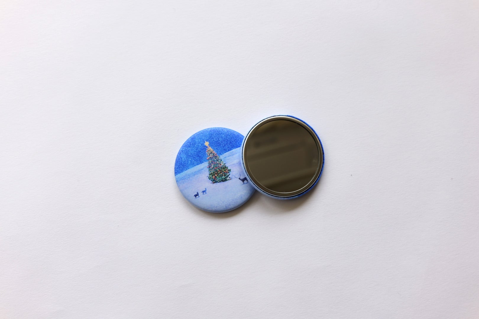 巾着ポーチ、ハンカチ、缶ミラーの3点が入った