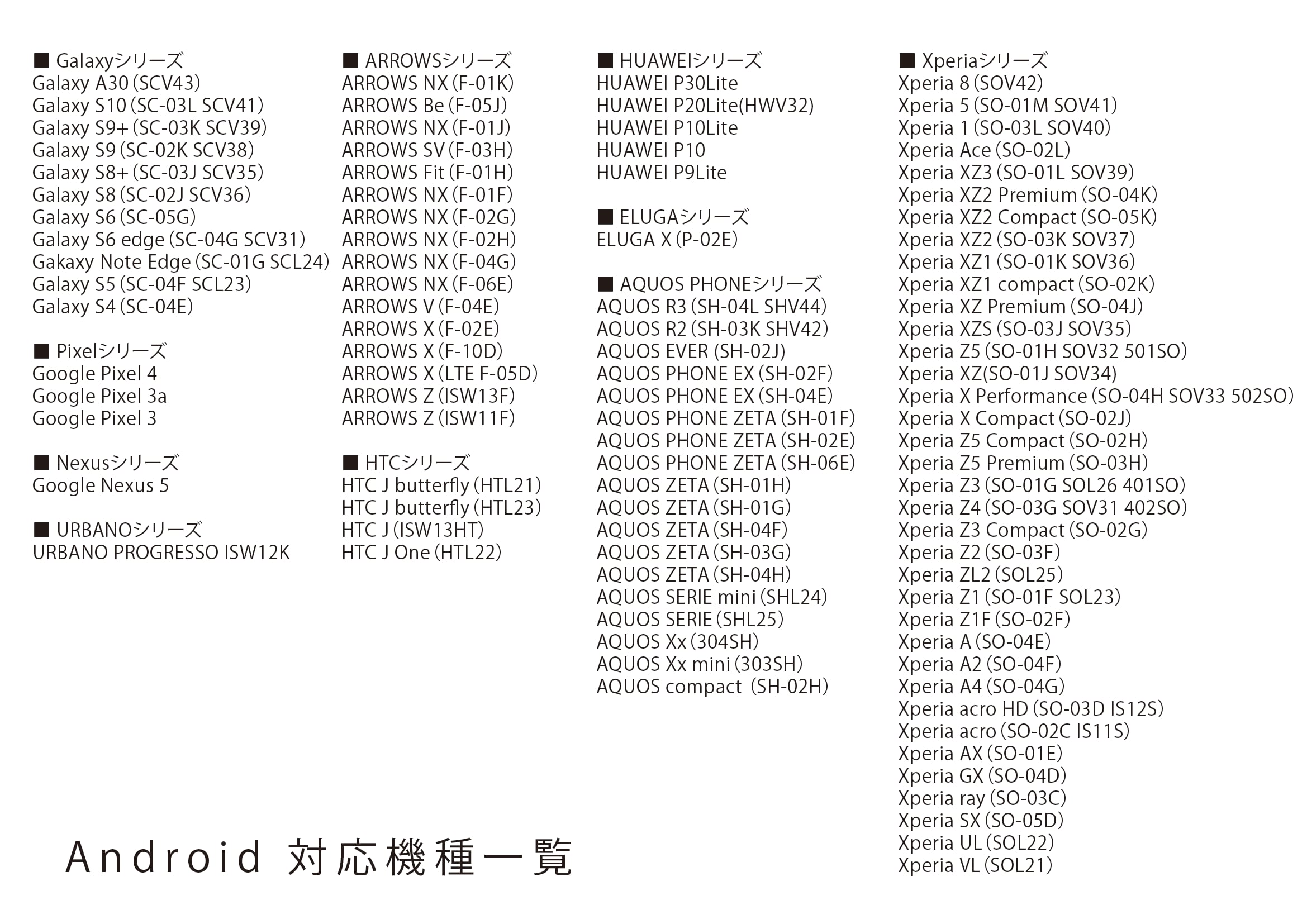 Androidは、Galaxy、 Nexus、URBANO、Xperia、HUAWEI、