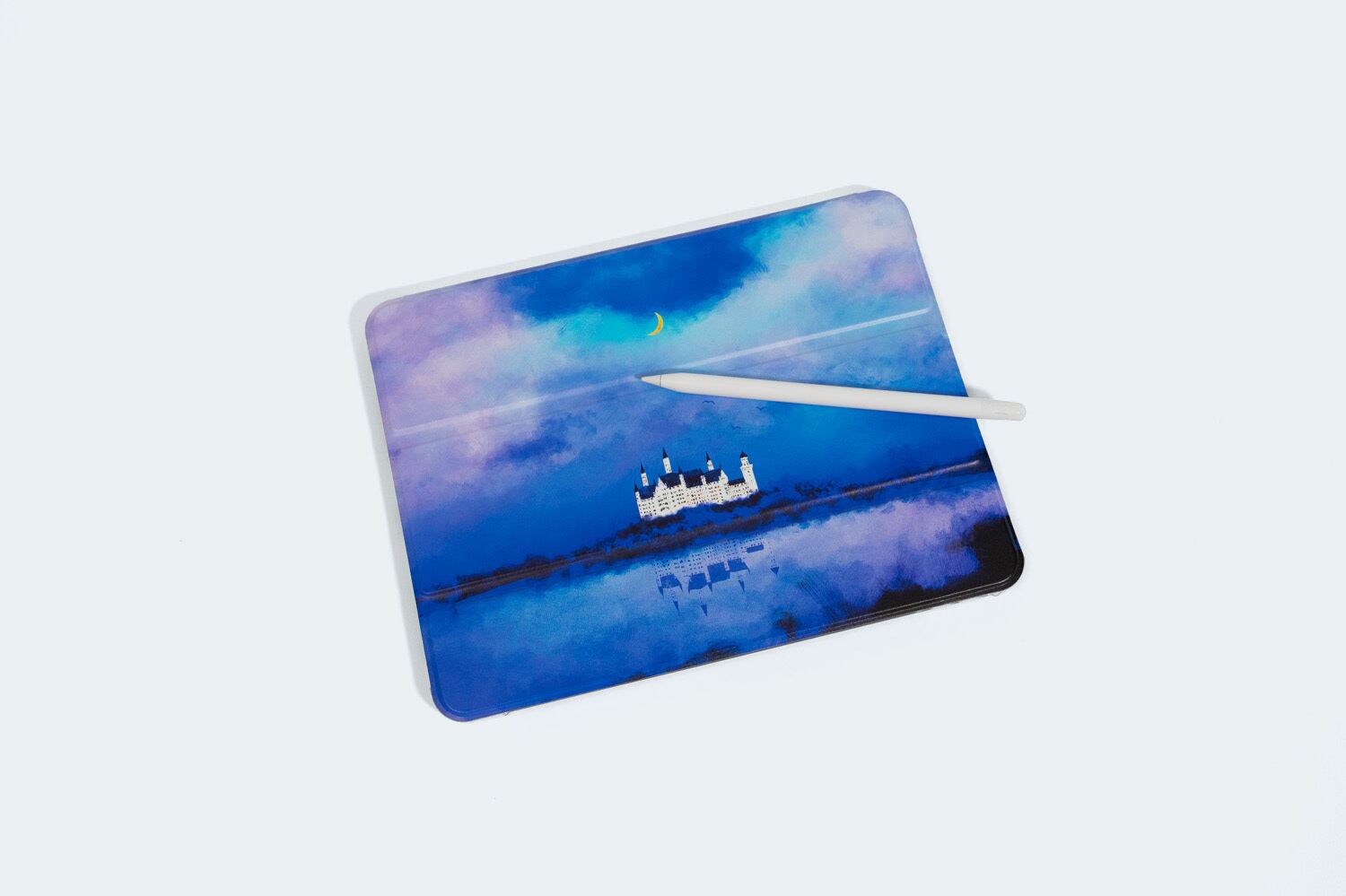 青い夜空とお城を描いた、iPadケース