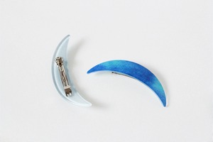 三日月の形をしたバレッタです。 青空と夜空の2種類、ございます。 こちらのバレッタは アクリルに印刷を施し、角を削り、 曲げ加工をしております。 *サイズ:106mm × 38mm 三日月の真ん中の太さは22mmです。 *金具サイズ:60mm × 8mm